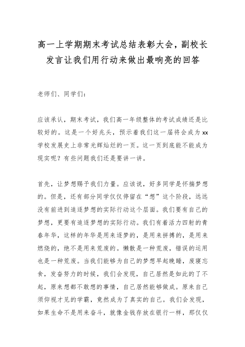 高一上学期期末考试总结表彰大会,副校长发言让我们用行动来做出最响亮的回答