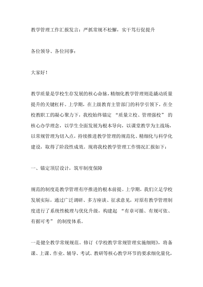 教学管理工作汇报发言:严抓常规不松懈,实干笃行促提升