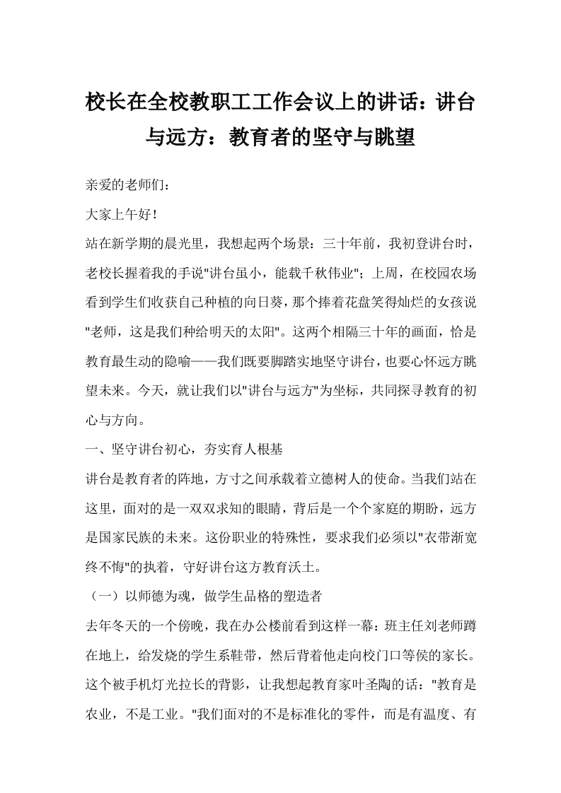校长在全校教职工工作会议上的讲话:讲台与远方:教育者的坚守与眺望