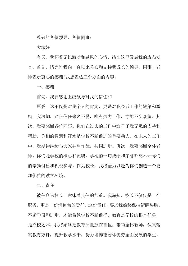 校长在任命会上表态发言