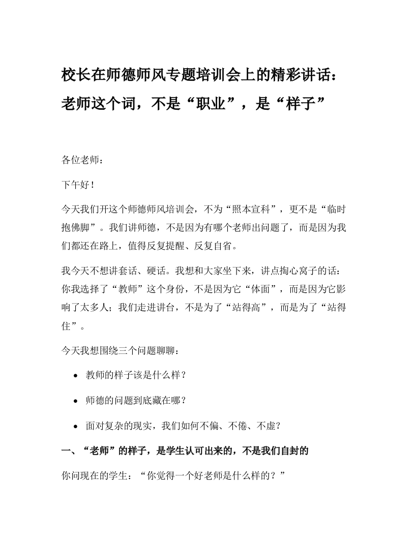 校长在师德师风专题培训会上的精彩讲话:老师这个词,不是“职业”,是“样子”