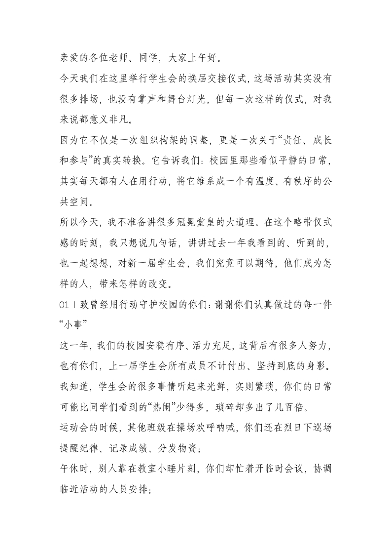 学生会换届大会校长讲话:在担当中成长,在服务中闪光,在校园中传递青春力量