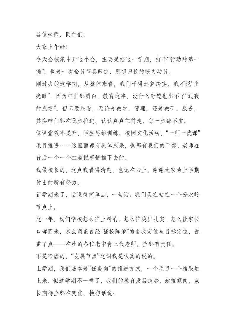 新学期教师会议教学副校长讲话:抓质量、正校风、以发展为导向提质增效