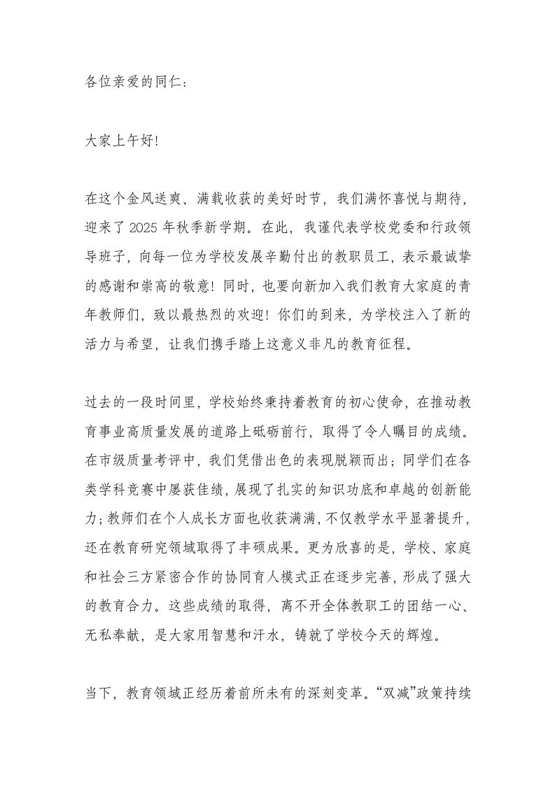 新学期教学工作会议上校长讲话:培养什么人?怎样培养人?为谁培养人?