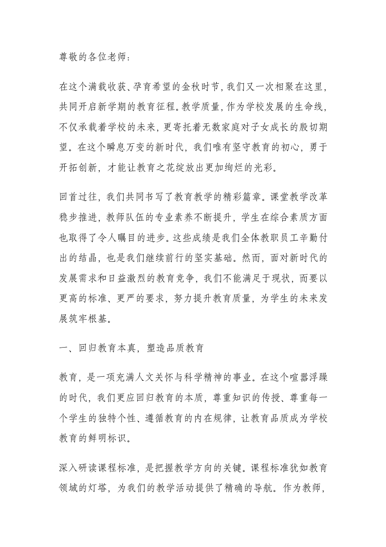 新学期教学工作会议上校长讲话:一心一意抓质量,一点一滴见成效,一步一脚印做教学!
