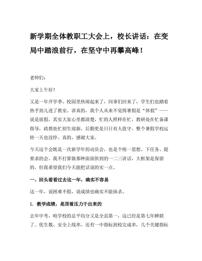首页校长资料工作讲话新学期全体教职工大会上,校长讲话:在变局中踏浪前行,在坚守中再攀高峰!