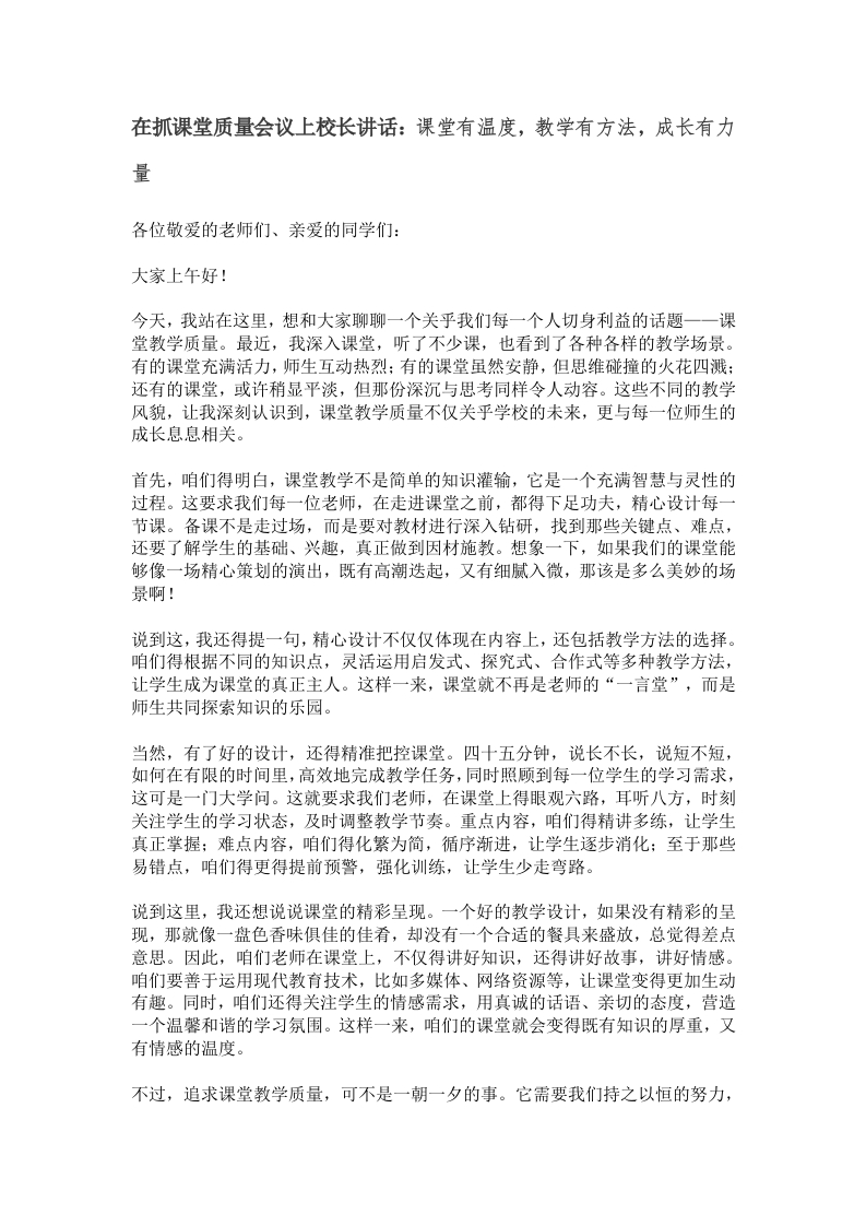 在抓课堂质量会议上校长讲话:课堂有温度,教学有方法,成长有力量