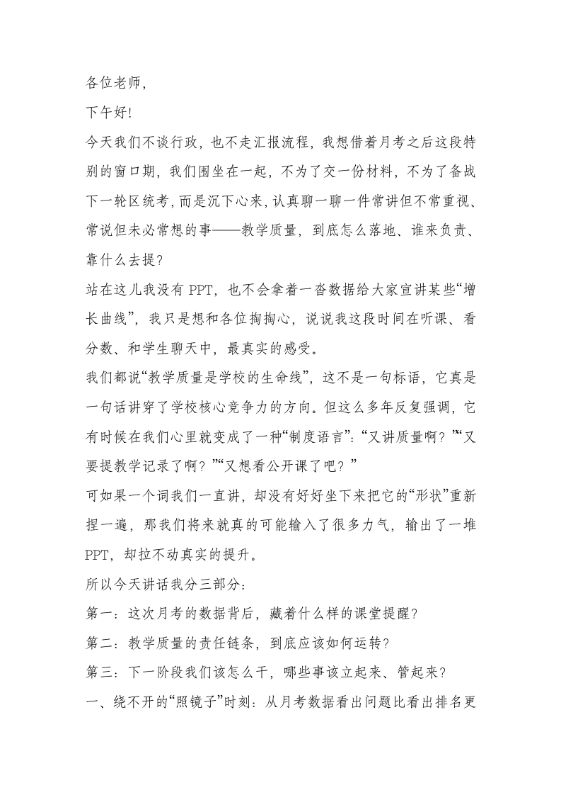 首页校长资料工作讲话扎心!质量分析会,校长灵魂拷问:究竟要把什么放在教学第一位?