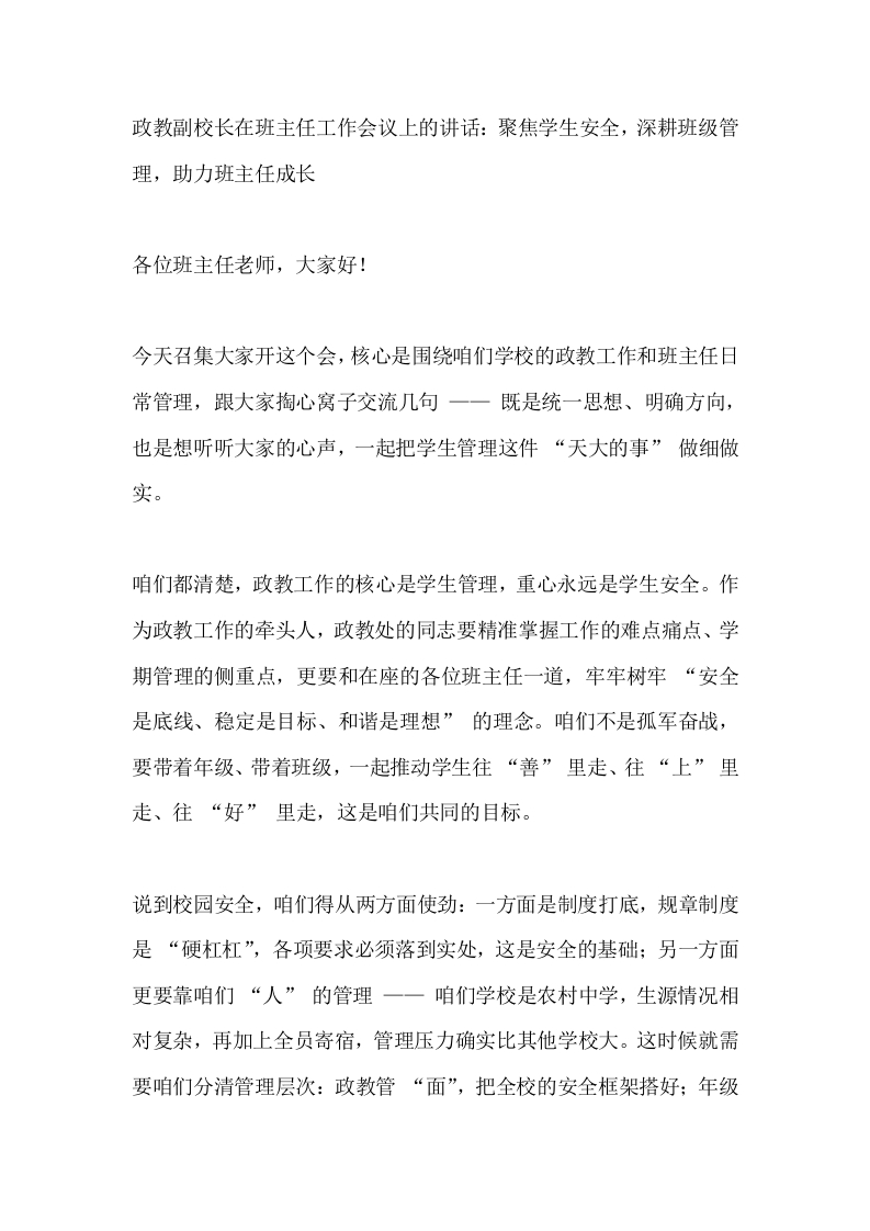 政教副校长在班主任工作会议上的讲话:聚焦学生安全,深耕班级管理,助力班主任成长