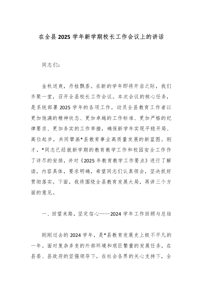 首页校长资料工作讲话在全县2025学年新学期校长工作会议上的讲话