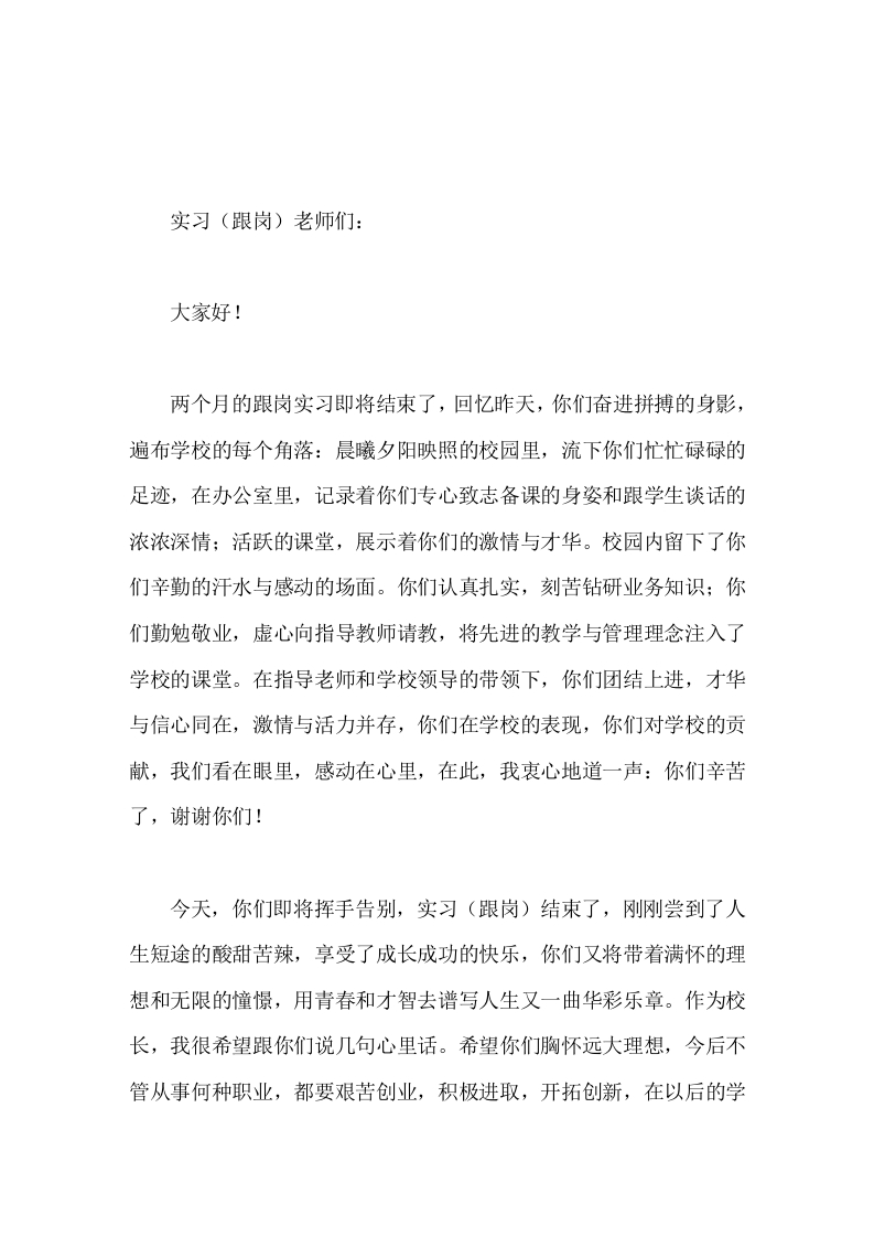 在实习(跟岗)老师会议上,校长讲话相信你们会在长期而艰苦的实践中不断体现自己的人生价值,努力实现自己的人生目标。
