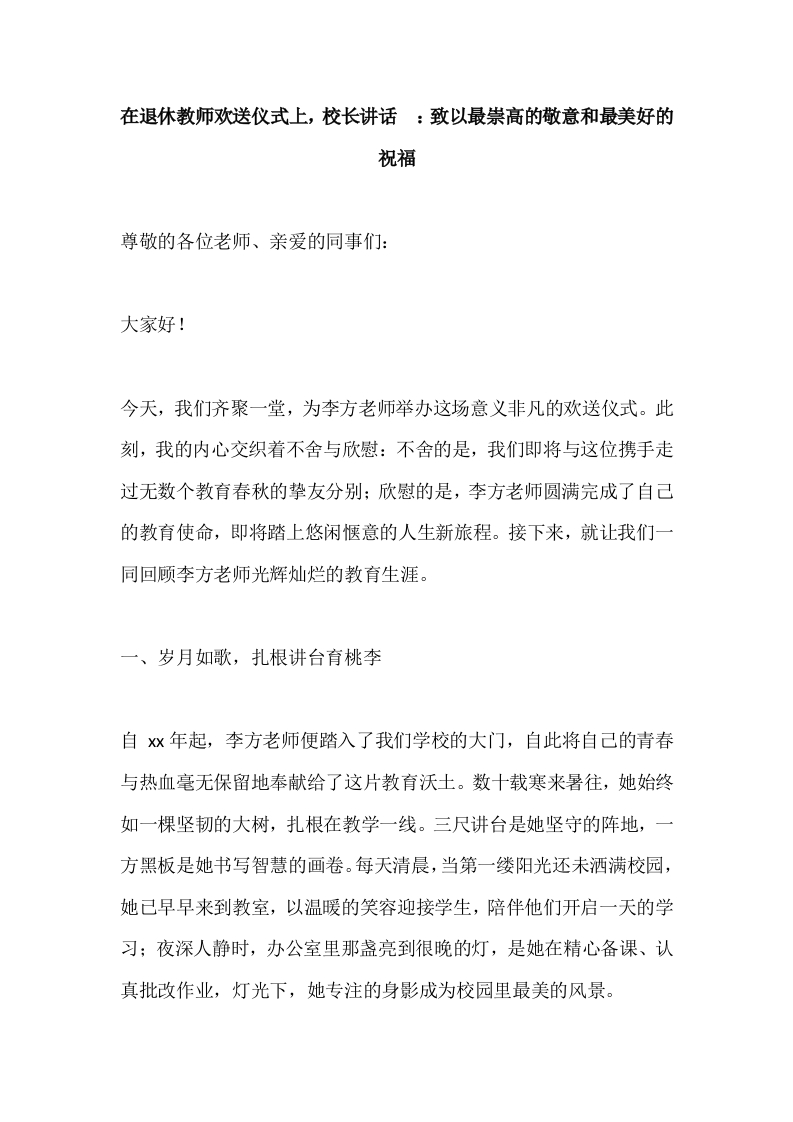 在退休教师欢送仪式上,校长讲话​:致以最崇高的敬意和最美好的祝福