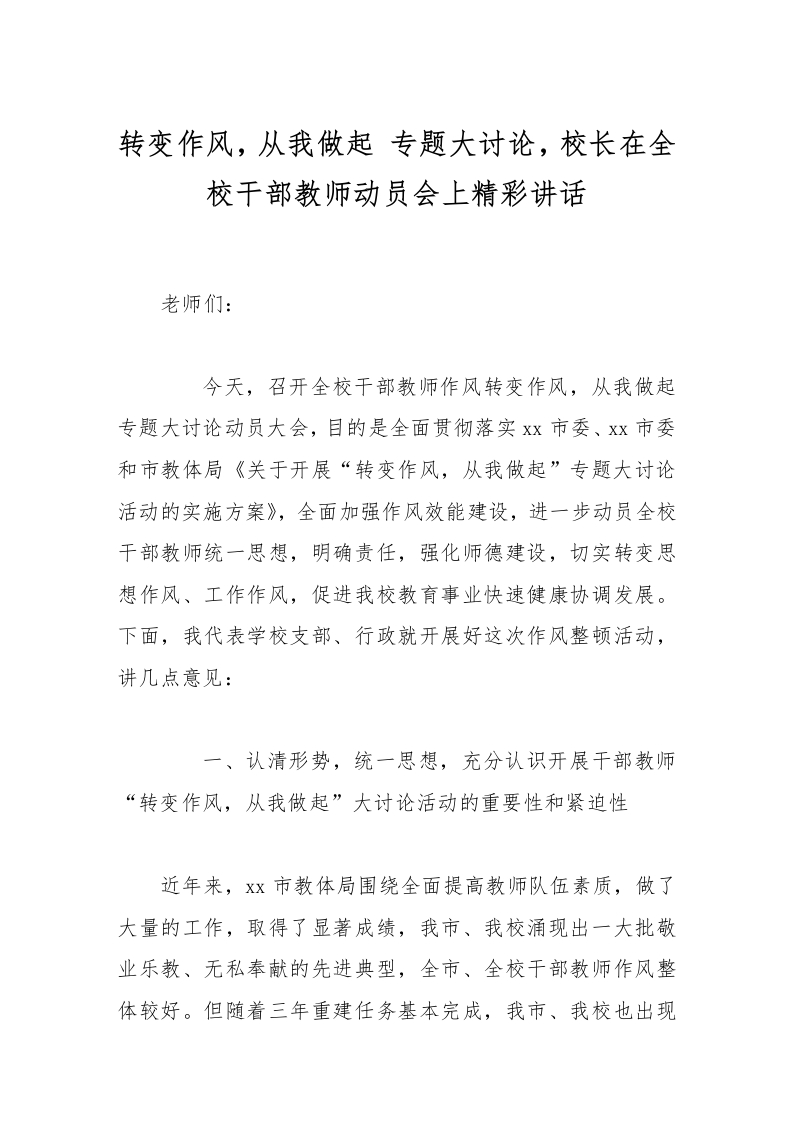 转变作风,从我做起 专题大讨论,校长在全校干部教师动员会上精彩讲话
