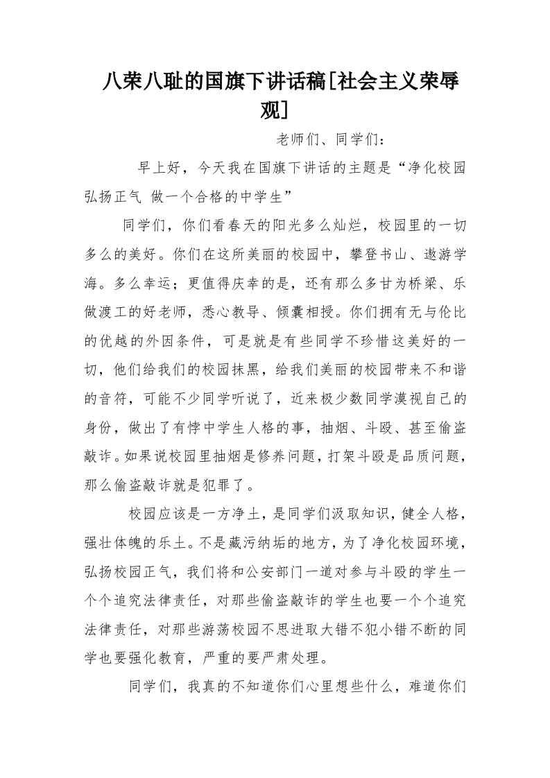 八荣八耻的国旗下讲话稿[社会主义荣辱观]_0[推荐]