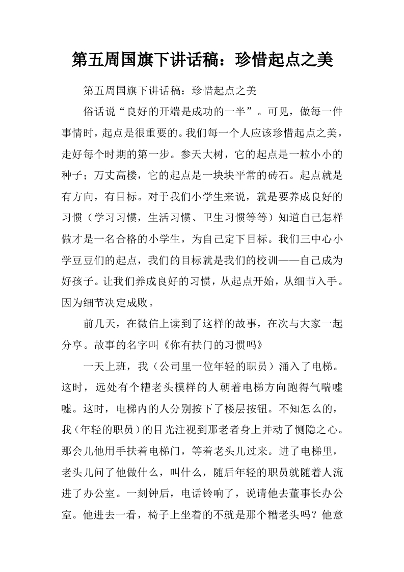 第五周国旗下讲话稿:珍惜起点之美[推荐]
