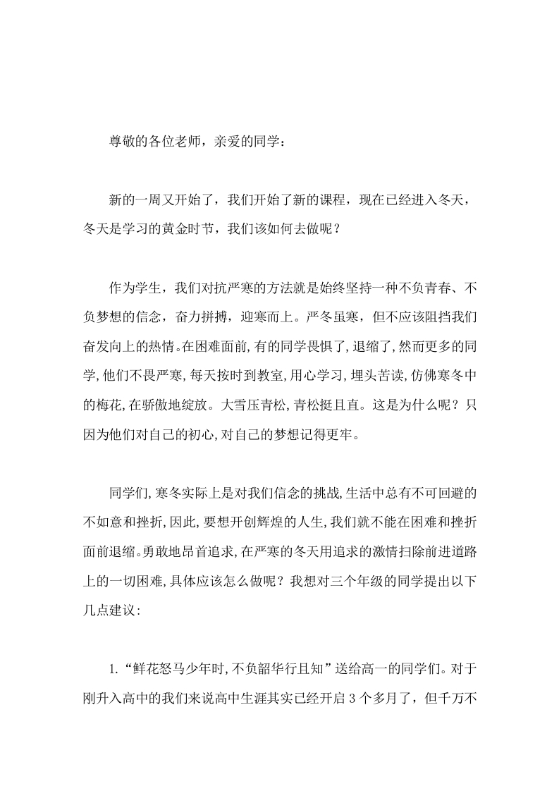 高中校长在国旗下讲话寒冬过后必是春天