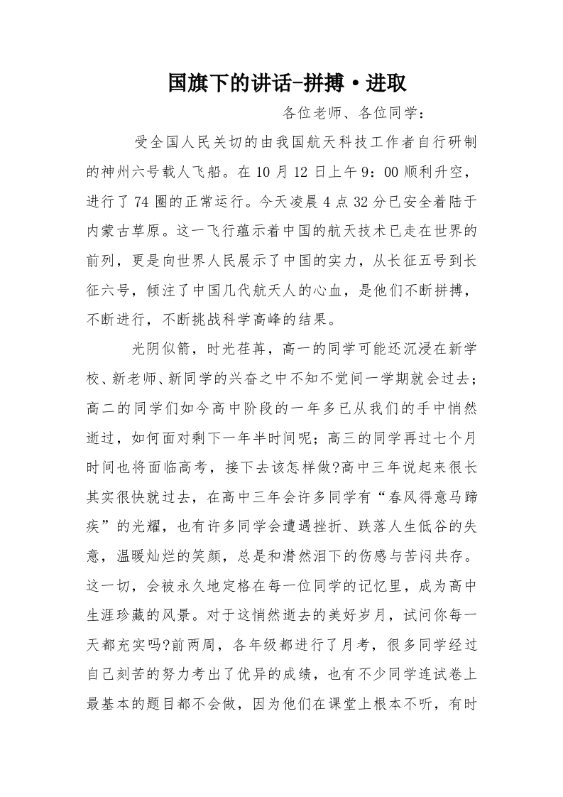 国旗下的讲话-拼搏·进取[推荐]