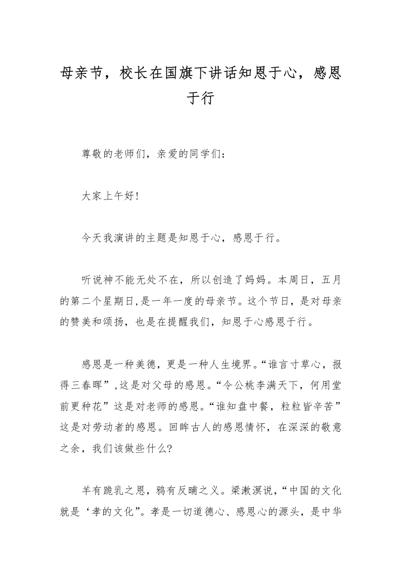 首页校长资料国旗讲话母亲节,校长在国旗下讲话知恩于心,感恩于行