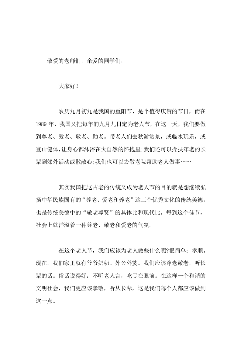 农历九月初九重阳节,校长在国旗下讲话孝顺