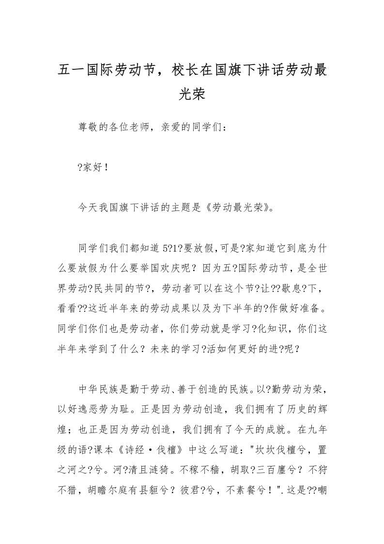 五一国际劳动节,校长在国旗下讲话劳动最光荣
