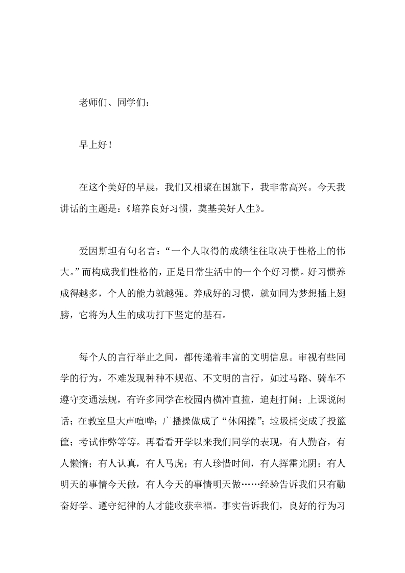 小学副校长在国旗下讲话培养良好习惯,奠基美好人生