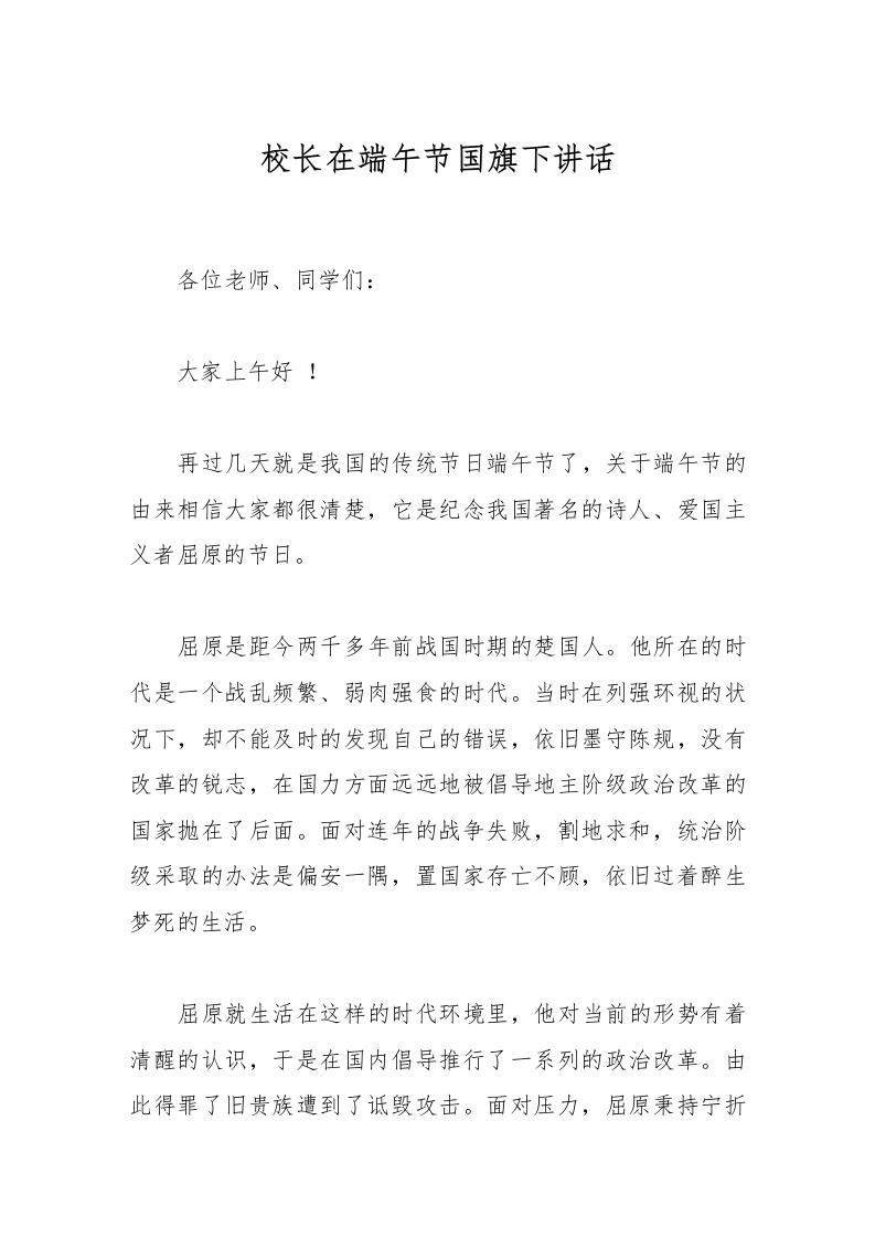 校长在端午节国旗下讲话