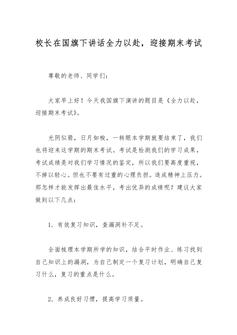 首页校长资料国旗讲话校长在国旗下讲话全力以赴,迎接期末考试