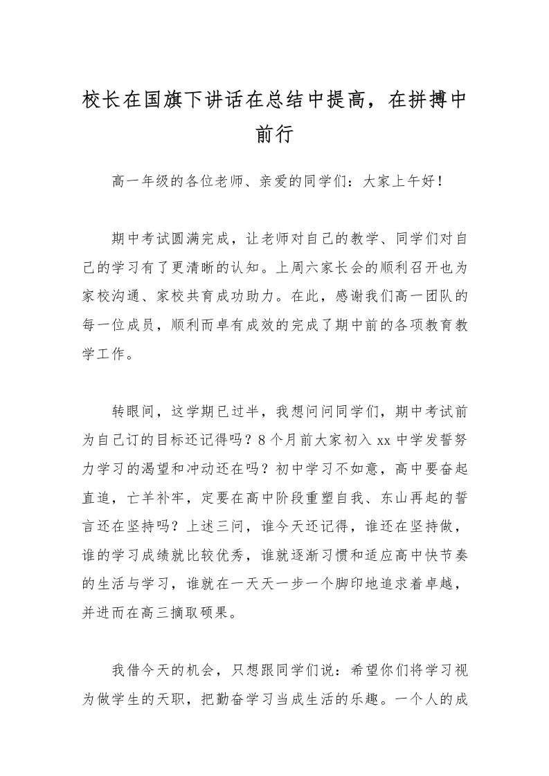 校长在国旗下讲话在总结中提高,在拼搏中前行