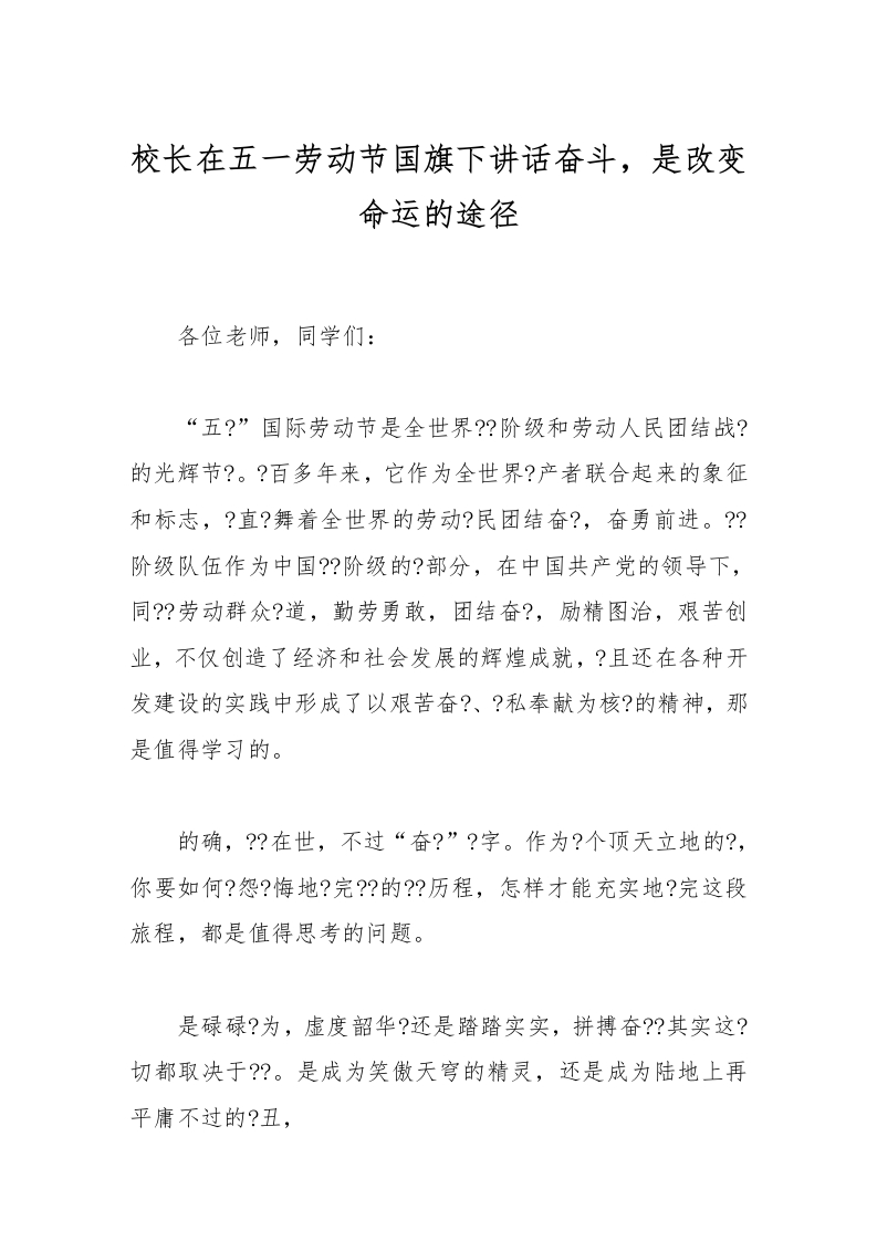 校长在五一劳动节国旗下讲话奋斗,是改变命运的途径