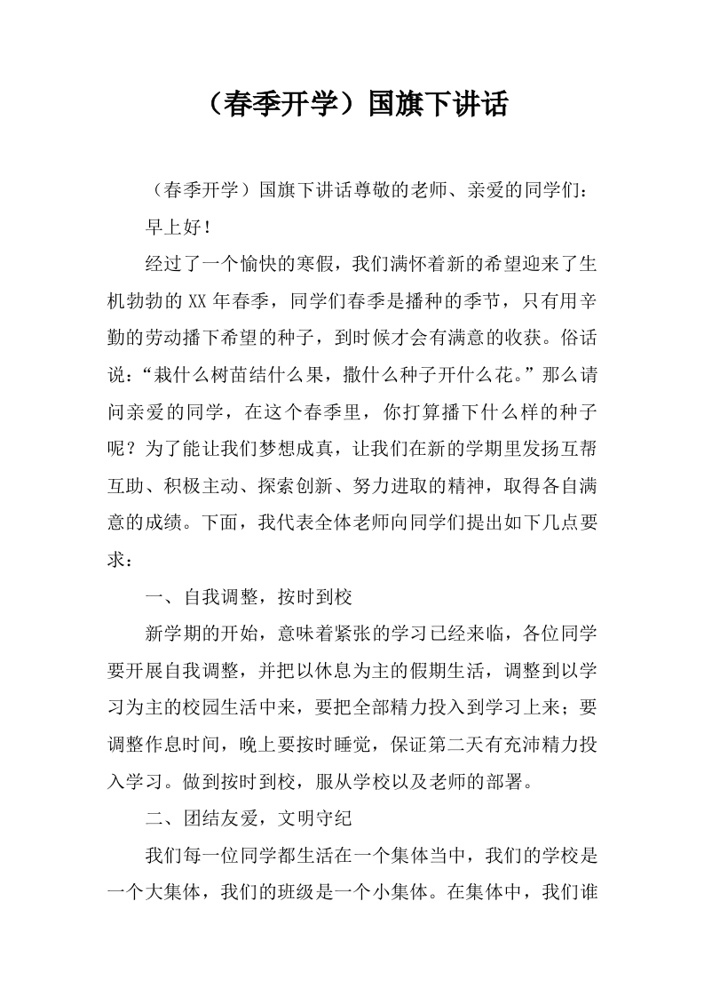 首页校长资料国旗讲话(春季开学)国旗下讲话[推荐]