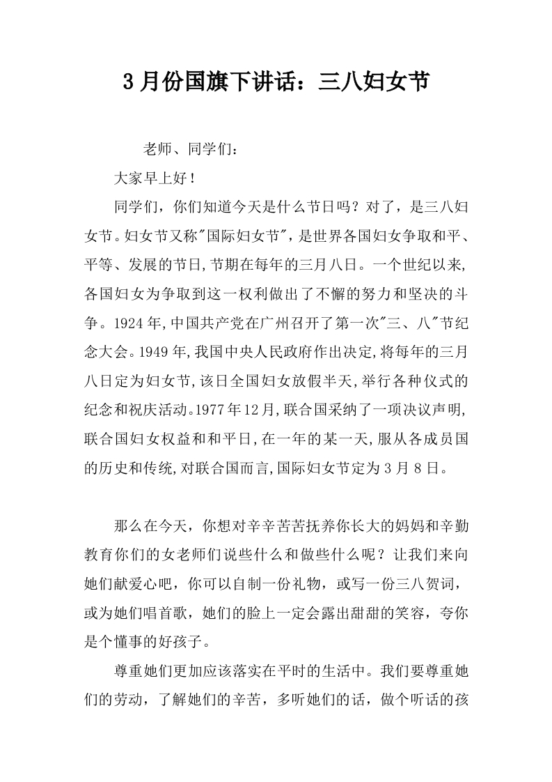 3月份国旗下讲话:三八妇女节[推荐]