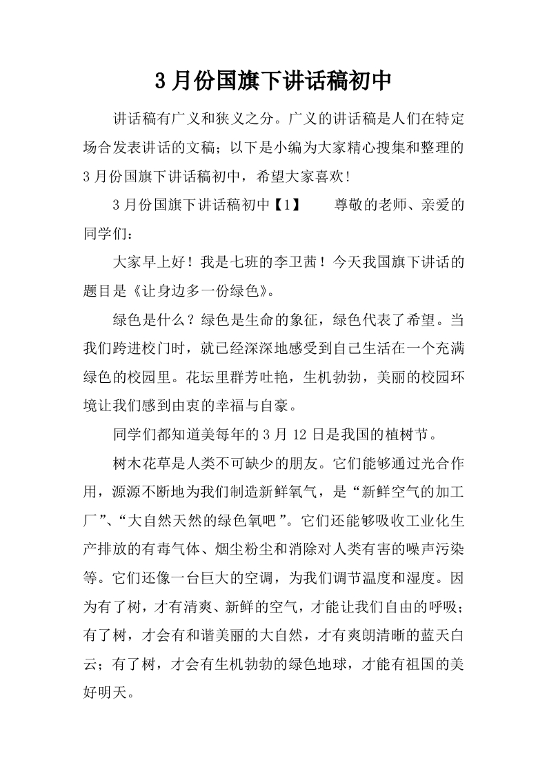 首页校长资料国旗讲话3月份国旗下讲话稿初中[推荐]