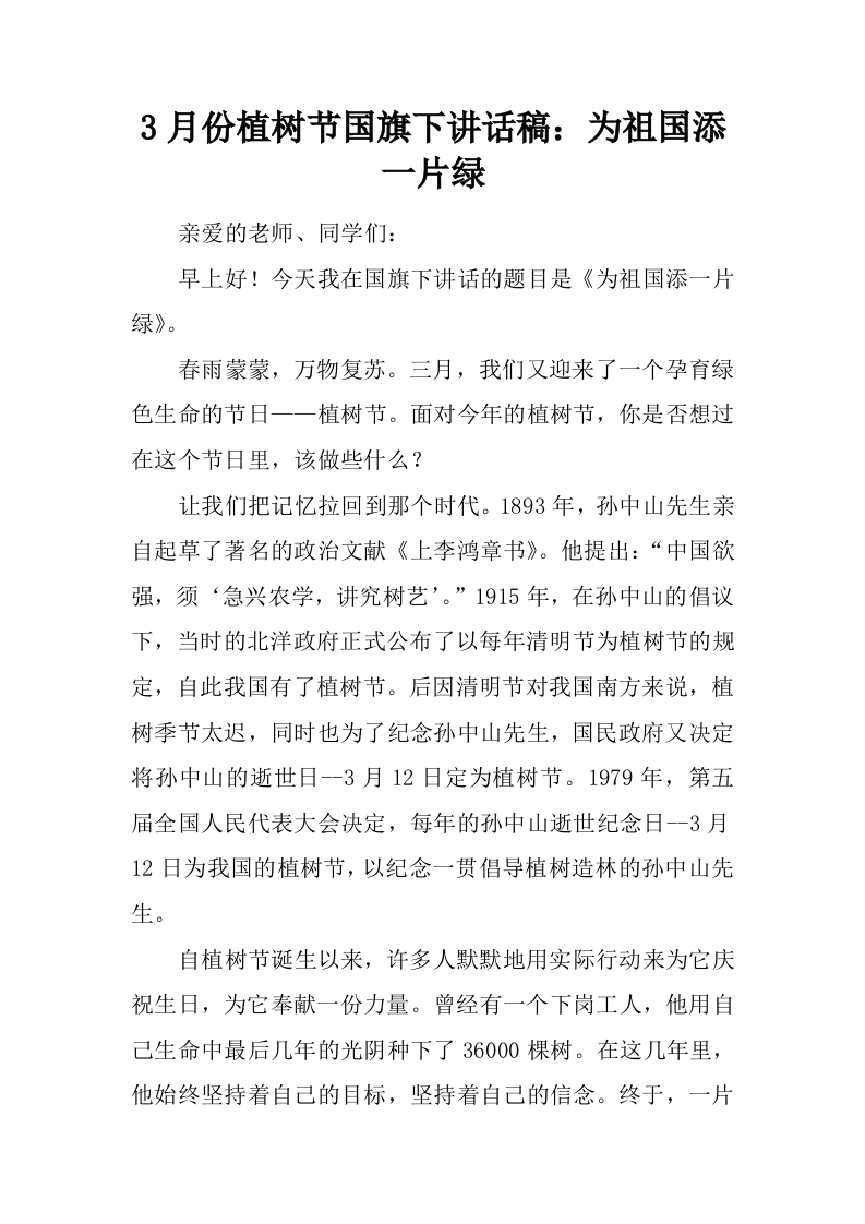 3月份植树节国旗下讲话稿:为祖国添一片绿[推荐]