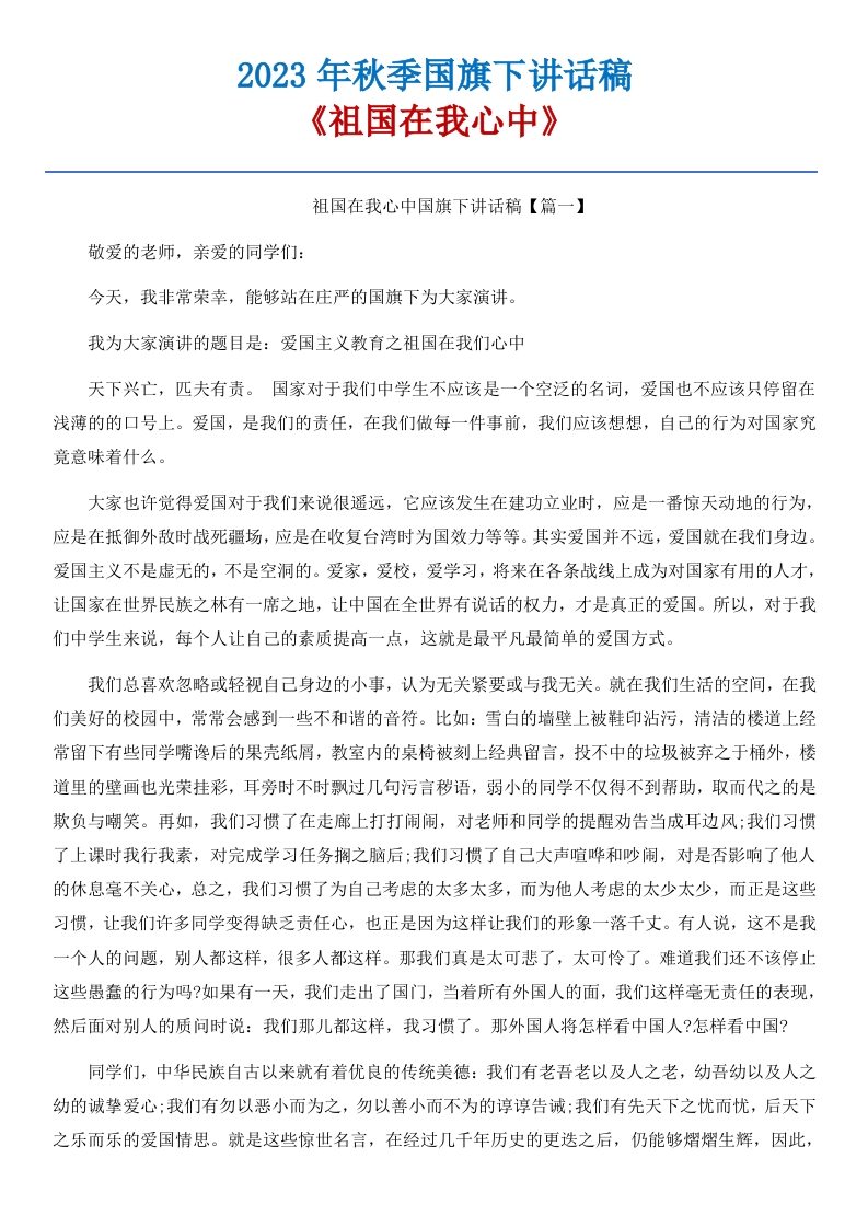 04 《祖国在我心中》国旗下讲话稿-3篇