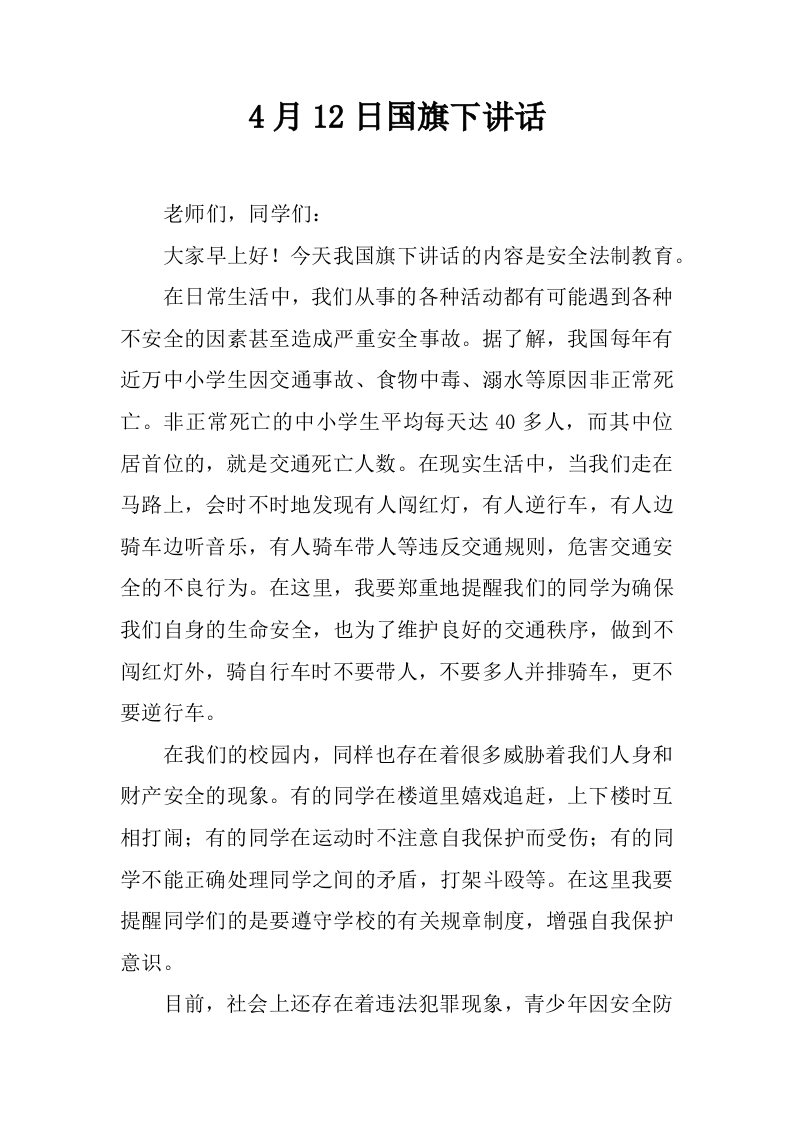 首页校长资料国旗讲话4月12日国旗下讲话[推荐]
