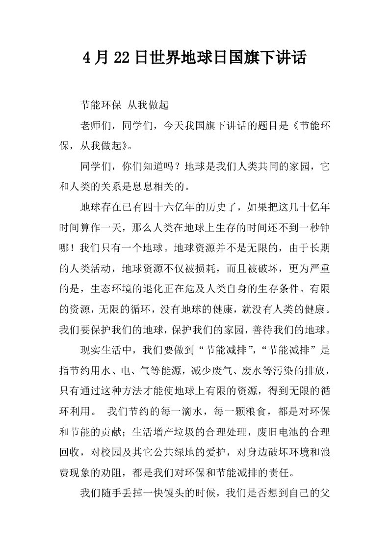 首页校长资料国旗讲话4月22日世界地球日国旗下讲话[推荐]