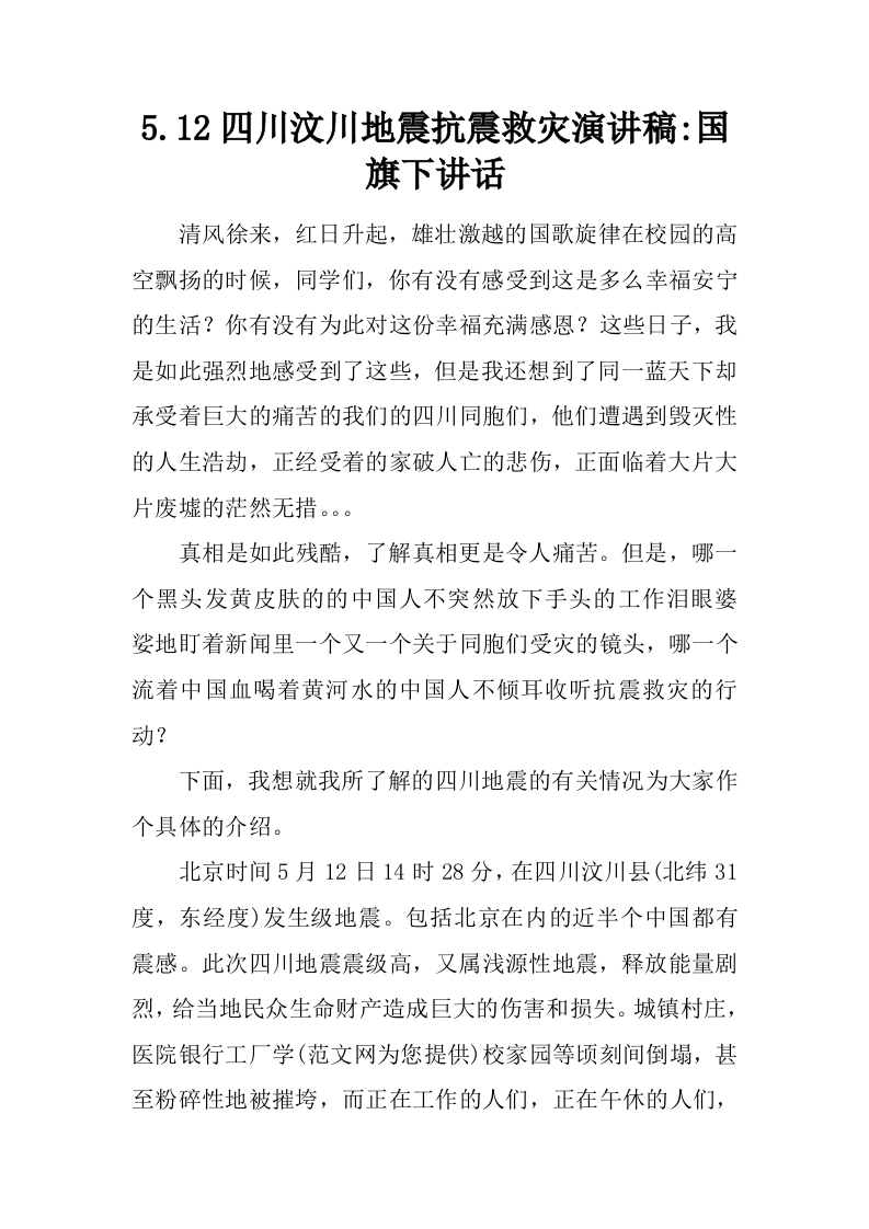 5.12四川汶川地震抗震救灾演讲稿-国旗下讲话[推荐]