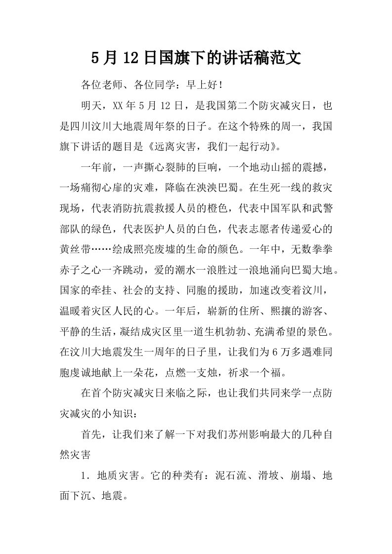 5月12日国旗下的讲话稿范文[推荐]