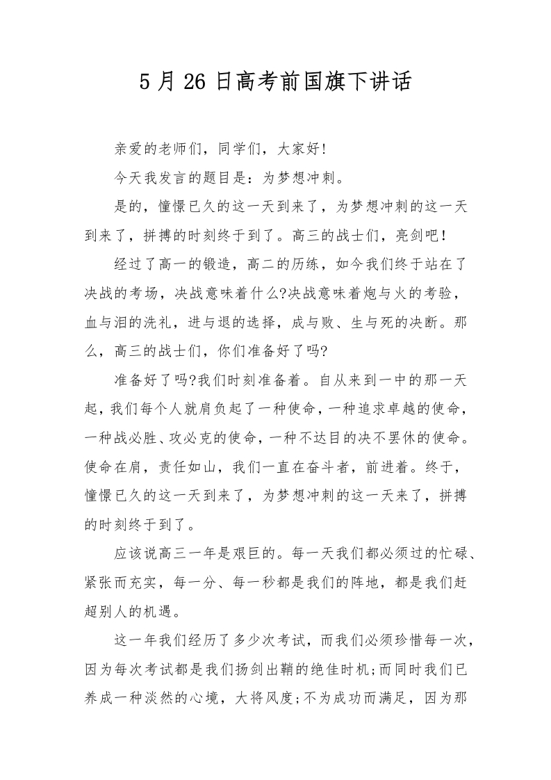 5月26日高考前国旗下讲话