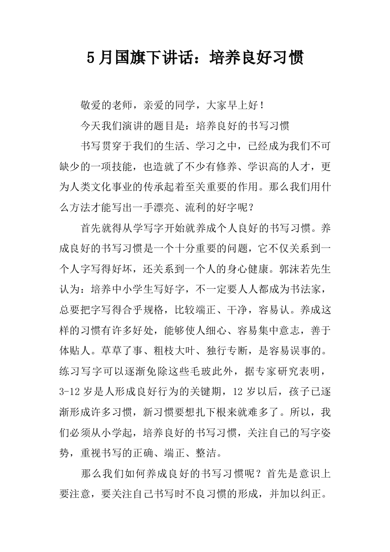 5月国旗下讲话:培养良好习惯[推荐]